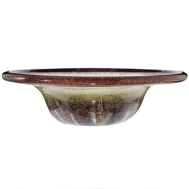 ENQUIRE ABOUT C.1940S-50S WMF IKORA GLASS BOWL IN RED-BROWN & GREEN