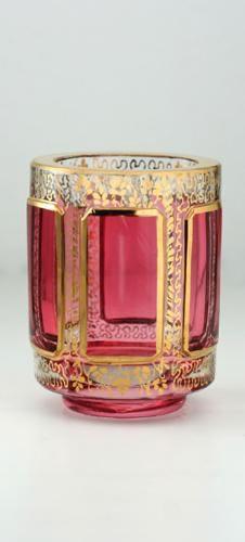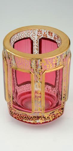 ENQUIRE ABOUT C.1920S BOHEMIAN CRANBERRY CABOCHON & GILDED GLASS TIDY JAR