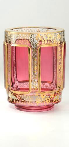 c.1920s BOHEMIAN CRANBERRY CABOCHON & GILDED GLASS TIDY JAR