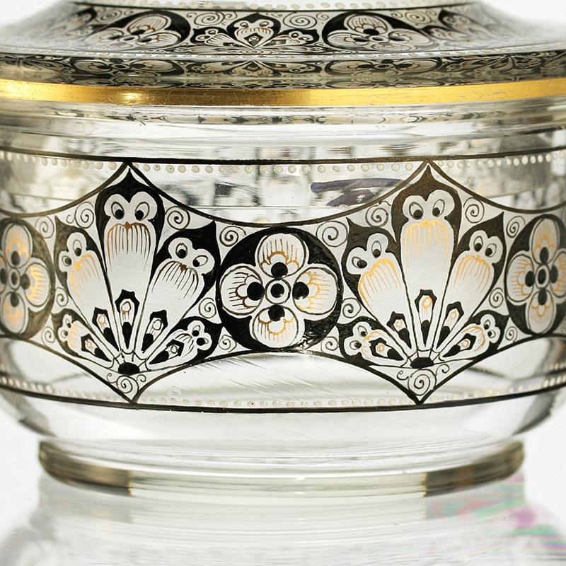 ENQUIRE ABOUT C.1920S FILIGREE PAINTED CLEAR GLASS BOWL & COVER, BECKERT PIETSCH