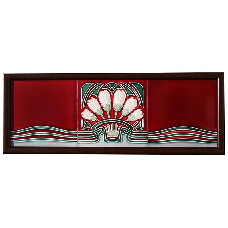ENQUIRE ABOUT C.1905 M.O.&.P.F. GERMAN ART NOUVEAU THREE TILE STYLISED BOTANICAL SET, FRAMED