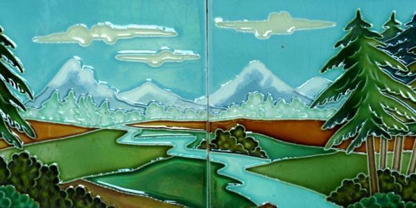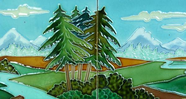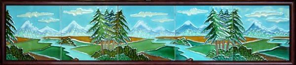 c.1910 LE POULET BELGIUM ART DECO FIVE TILE VISTA SET, FRAMED