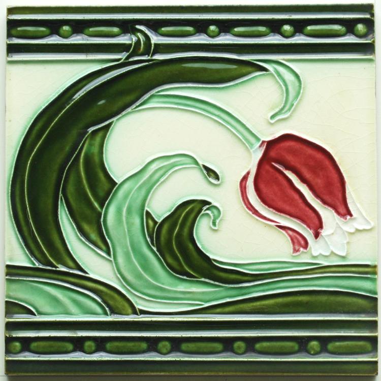ENQUIRE ABOUT C.1920S CERAMIQUES HERENT STYLISED TULIP THREE TILE PANEL, FRAMED