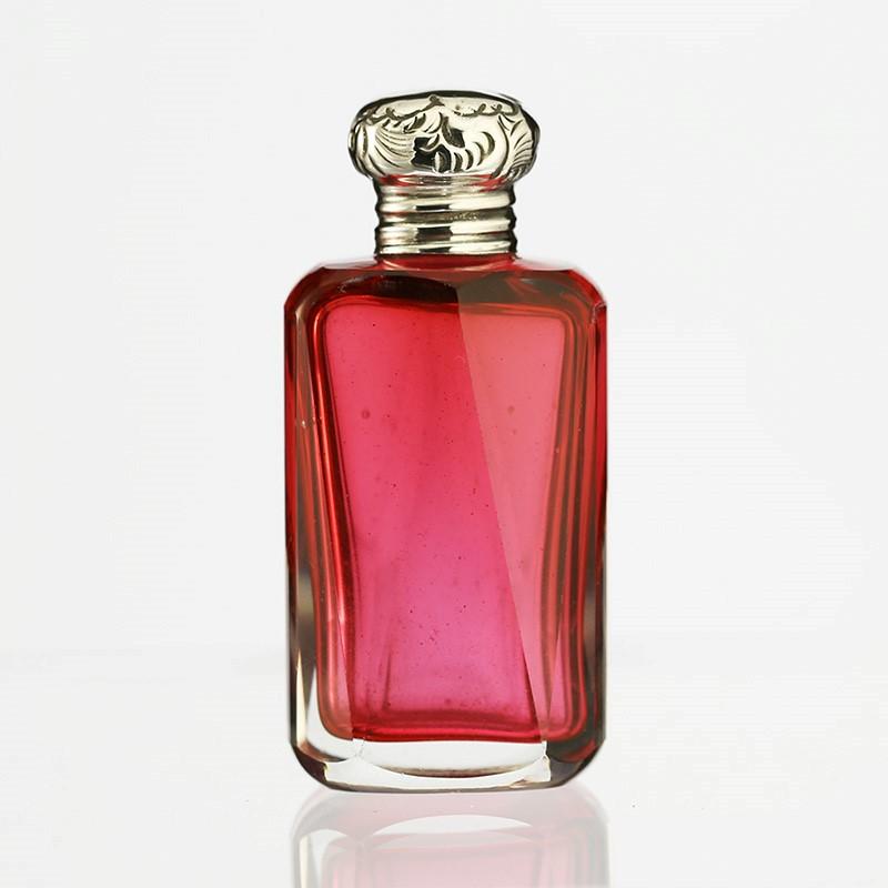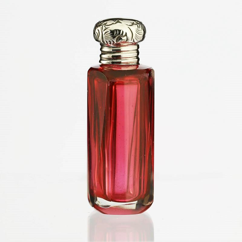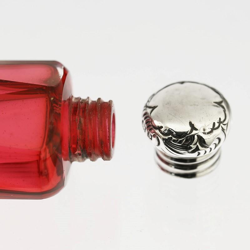 1900 cranberry cut glass scent perfume bottle, silver top