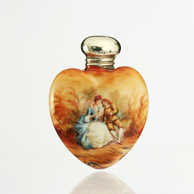 ENQUIRE ABOUT 1903 PORCELAIN SCENT PERFUME BOTTLE WITH COUPLE MOTIF