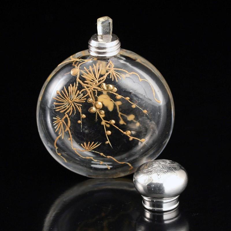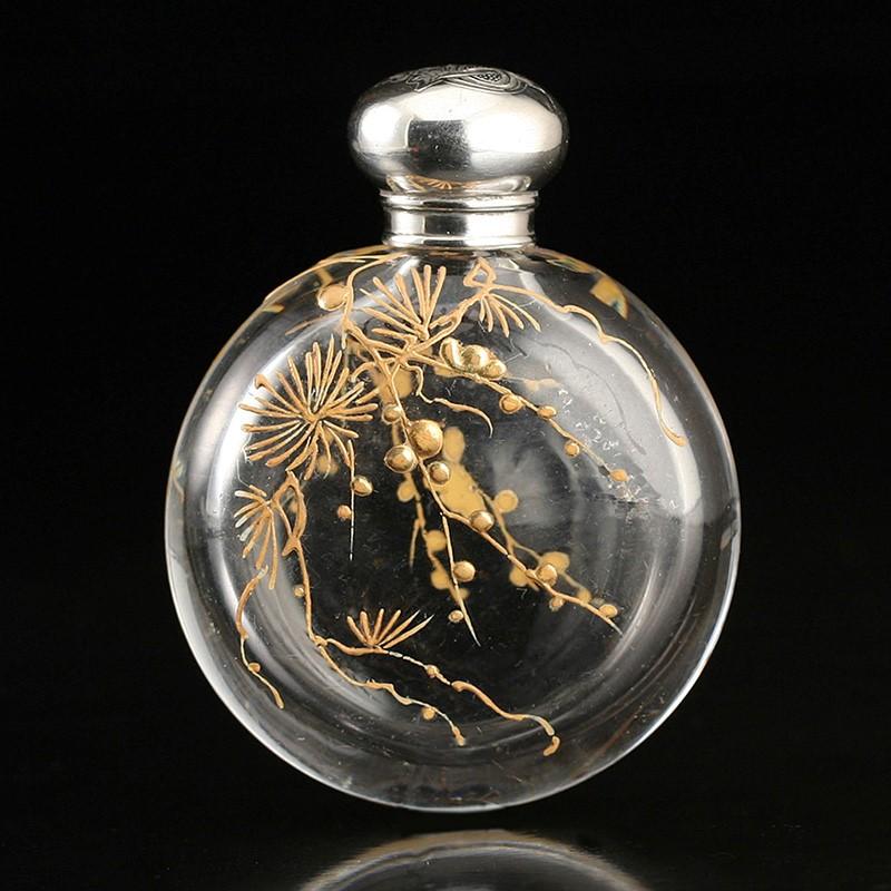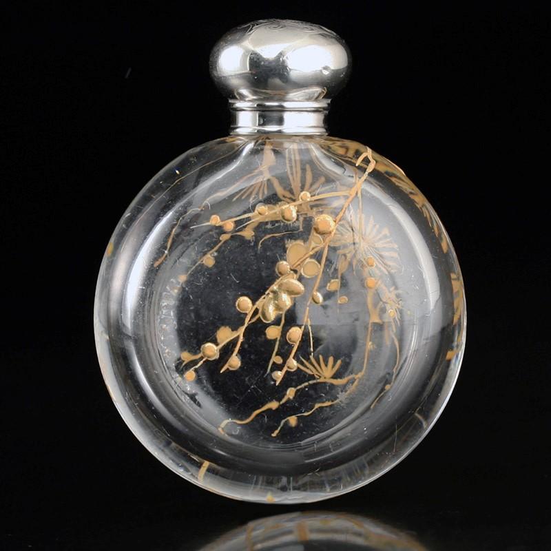 ENQUIRE ABOUT C.1870 GILDED CRYSTAL SCENT PERFUME BOTTLE, SILVER TOP