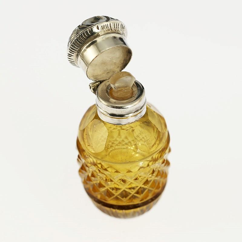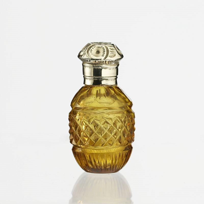 ENQUIRE ABOUT C.1880 MINIATURE AMBER CUT GLASS SCENT PERFUME BOTTLE