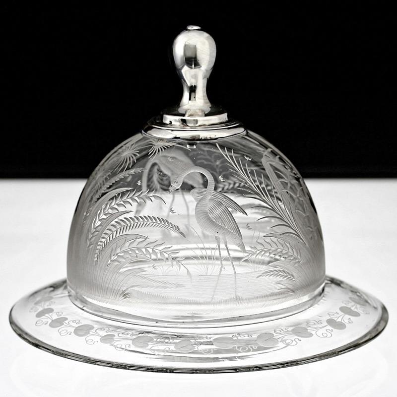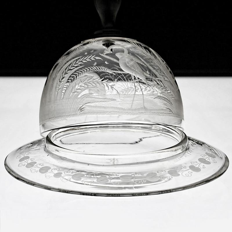 ENQUIRE ABOUT C.1850-60 DUTCH ENGRAVED GLASS BUTTER BELL AND DISH