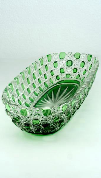 c.1920s BACCARAT DIAMANTS 3863 GREEN OVERLAY CRYSTAL DISH