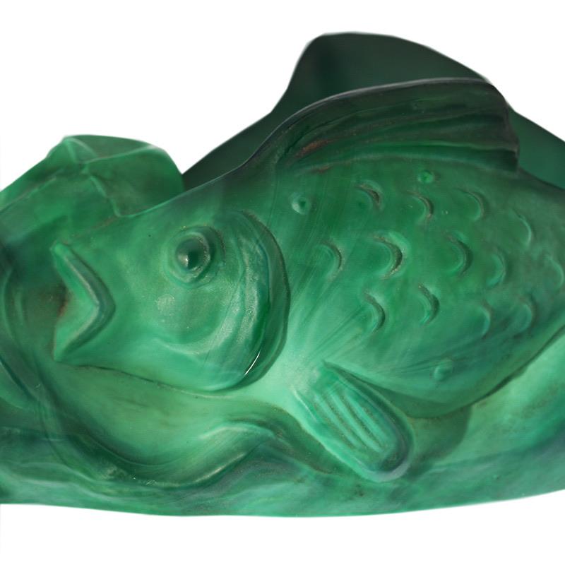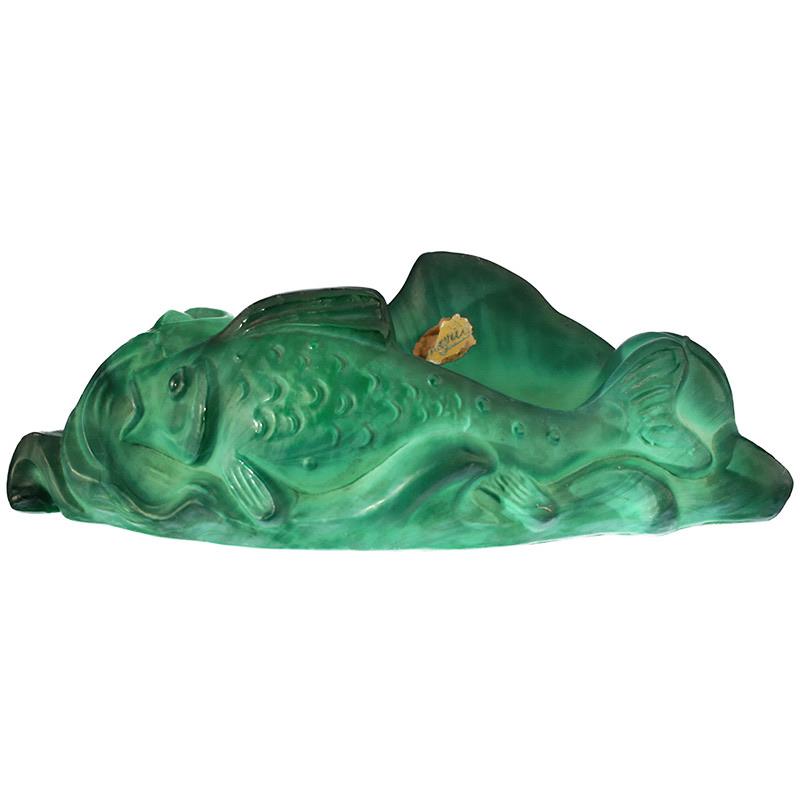 c.1930s Schlevogt Ingrid malachite glass dish with fish motif