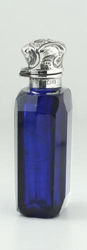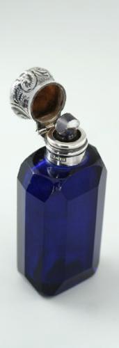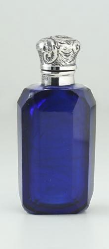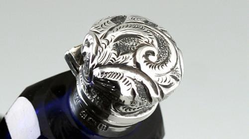 ENQUIRE ABOUT 1912 FACET CUT COBALT GLASS SCENT PERFUME BOTTLE, STERLING SILVER TOP
