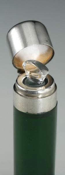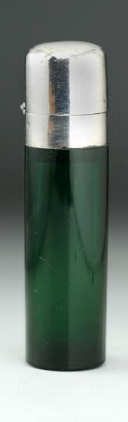 c.1890 EMERALD GLASS CYLINDER SCENT PERFUME BOTTLE, SILVER TOP