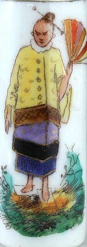 c.1890 PORCELAIN CYLINDER SCENT BOTTLE WITH POLYCHROME CHINESE FIGURES MOTIF