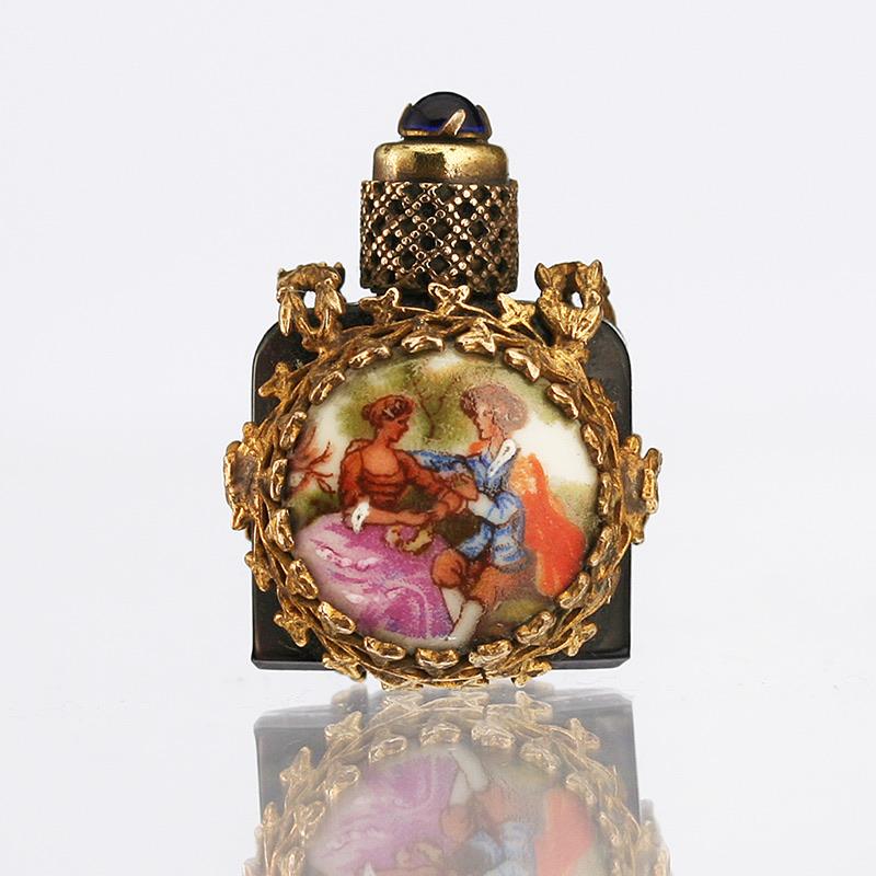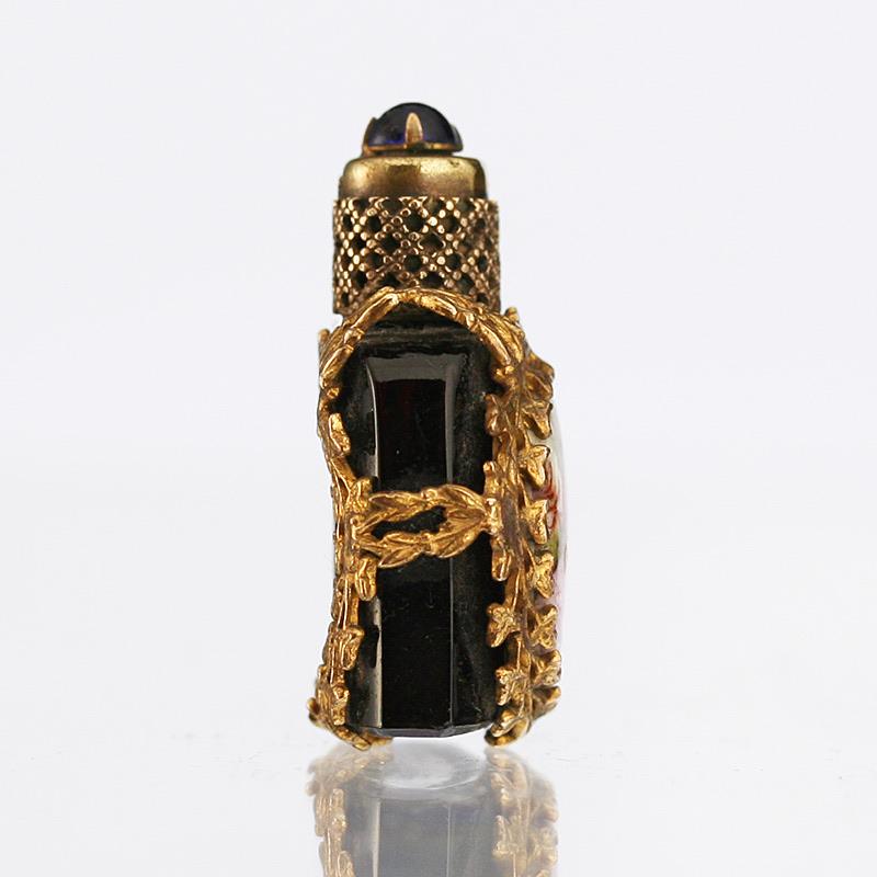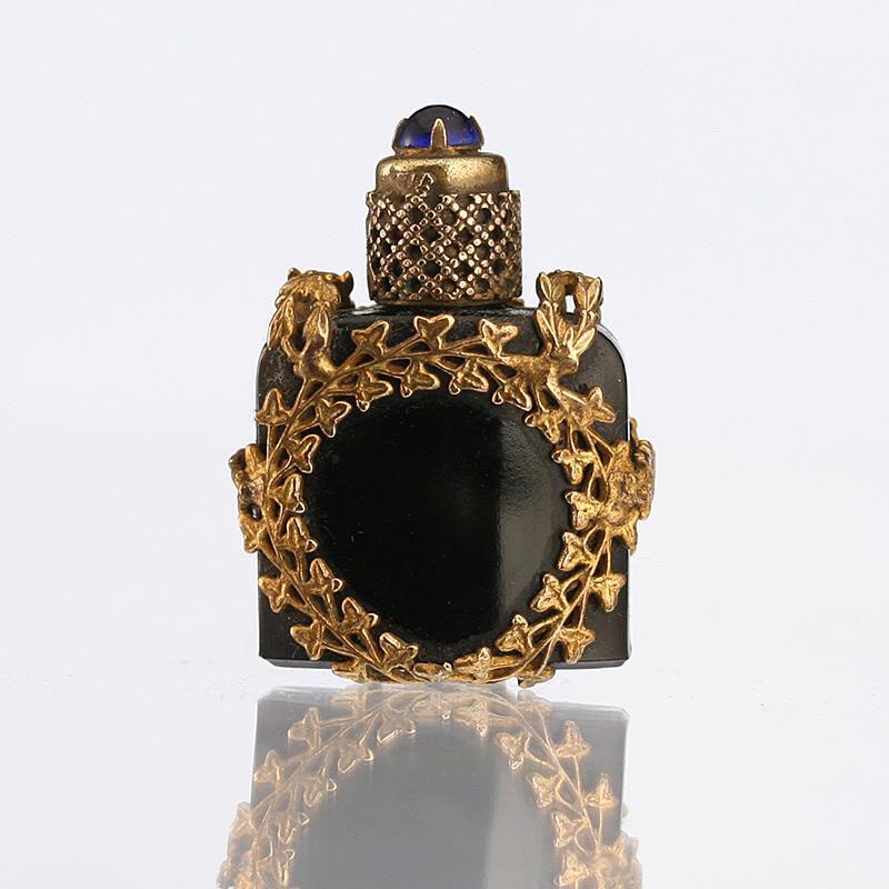 c.1920s Czechoslovakian caged cobalt glass scent perfume bottle