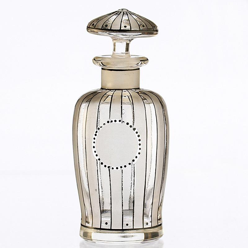c.1920s French Art Deco enamelled & etched glass scent perfume bottle #3