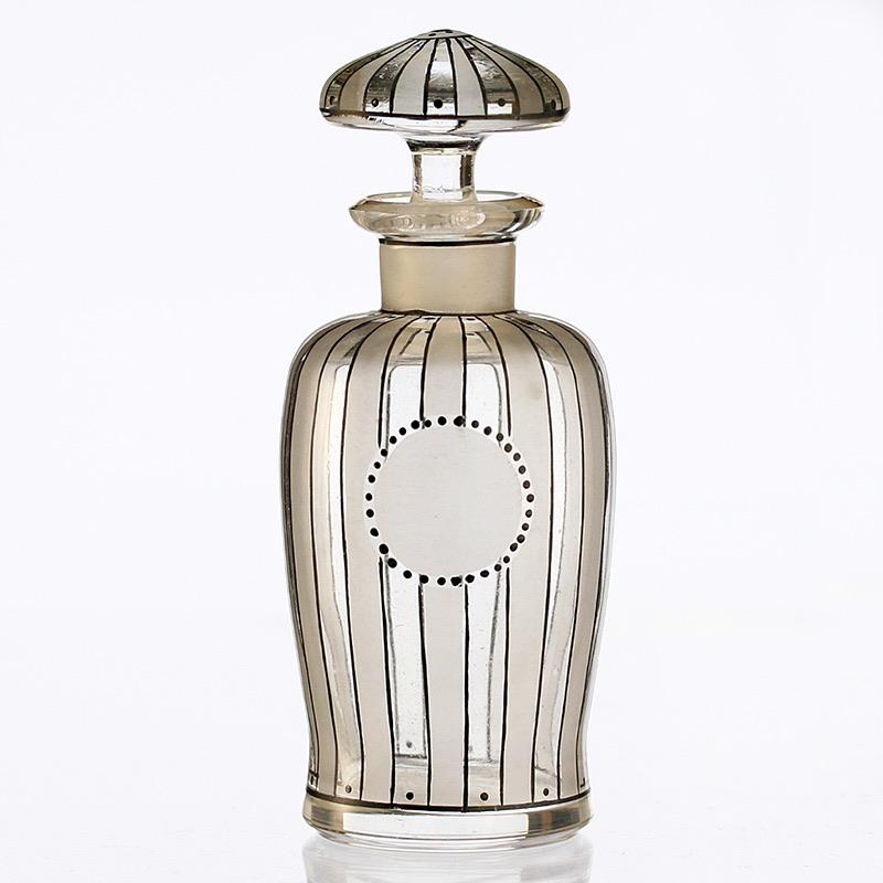 c.1920s French Art Deco enamelled & etched glass scent perfume bottle #4