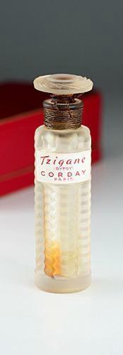c.1937 RENE LALIQUE BOXED CORDAY TZIGANE GYPSY GLASS PERFUME SCENT BOTTLE