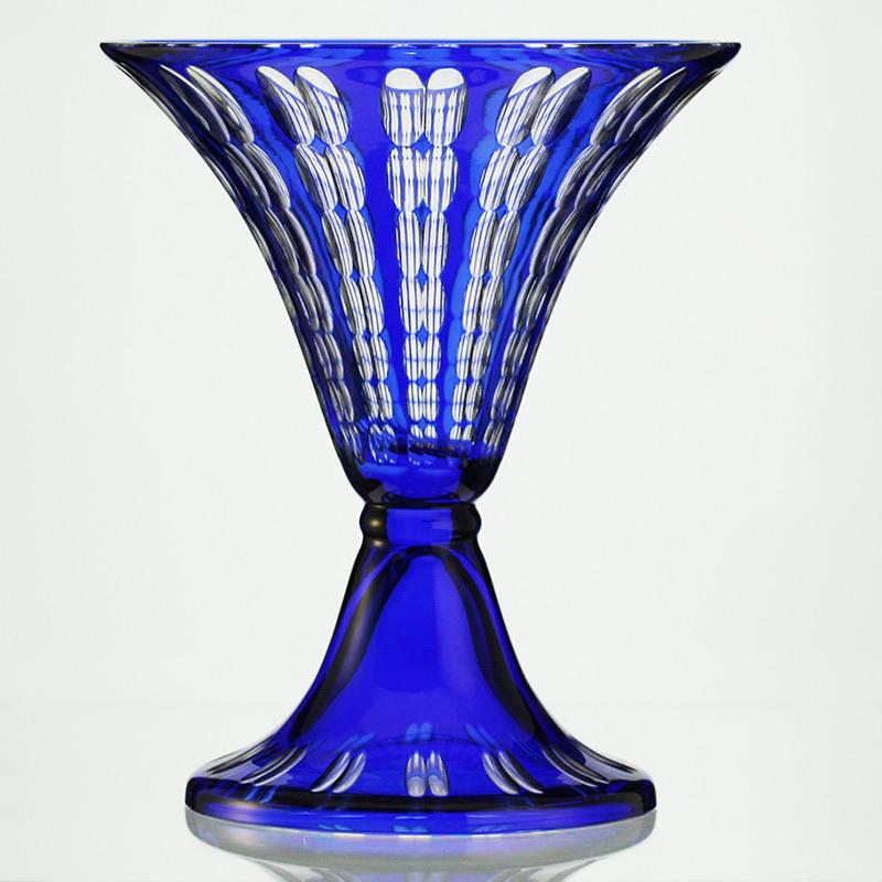 ENQUIRE ABOUT 1915-20 TALL OPTIC CUT BLUE OVERLAY GLASS VASE, JOHANN OERTEL HAIDA