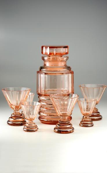 1930s DECO DECANTER, JAR, CARAFE, FLAGON & GLASSES SET
