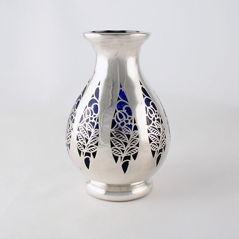 ENQUIRE ABOUT C.1910-20 JOSEPHINENHÜTTE DEUSCH SILVER OVERLAY COBALT CRYSTAL VASE
