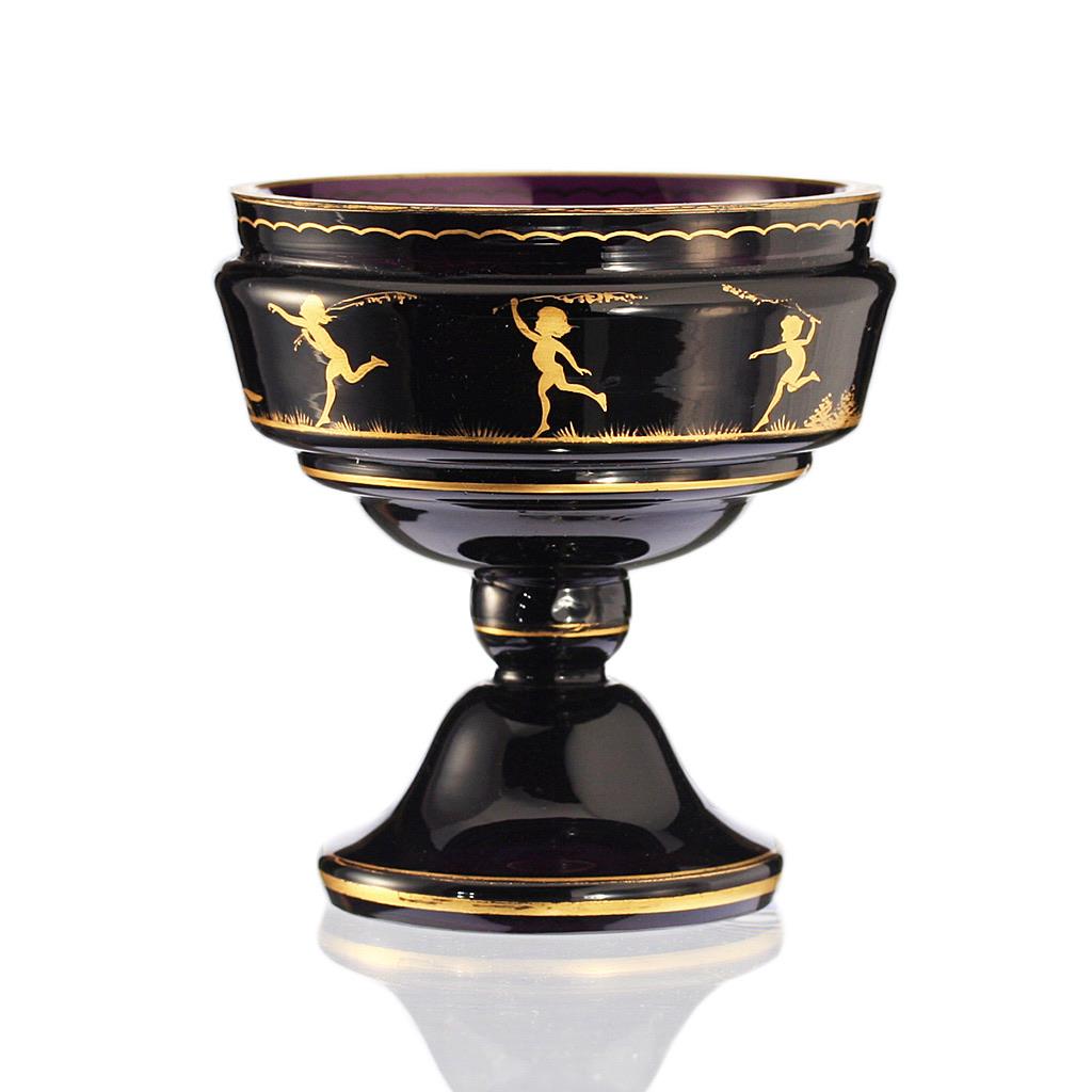 ENQUIRE ABOUT C.1910 AMETHYST GLASS FOOTED BOWL, DIEFENBACH STYLE FIGURAL DECORATION