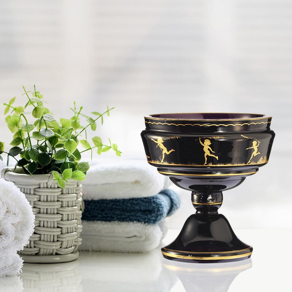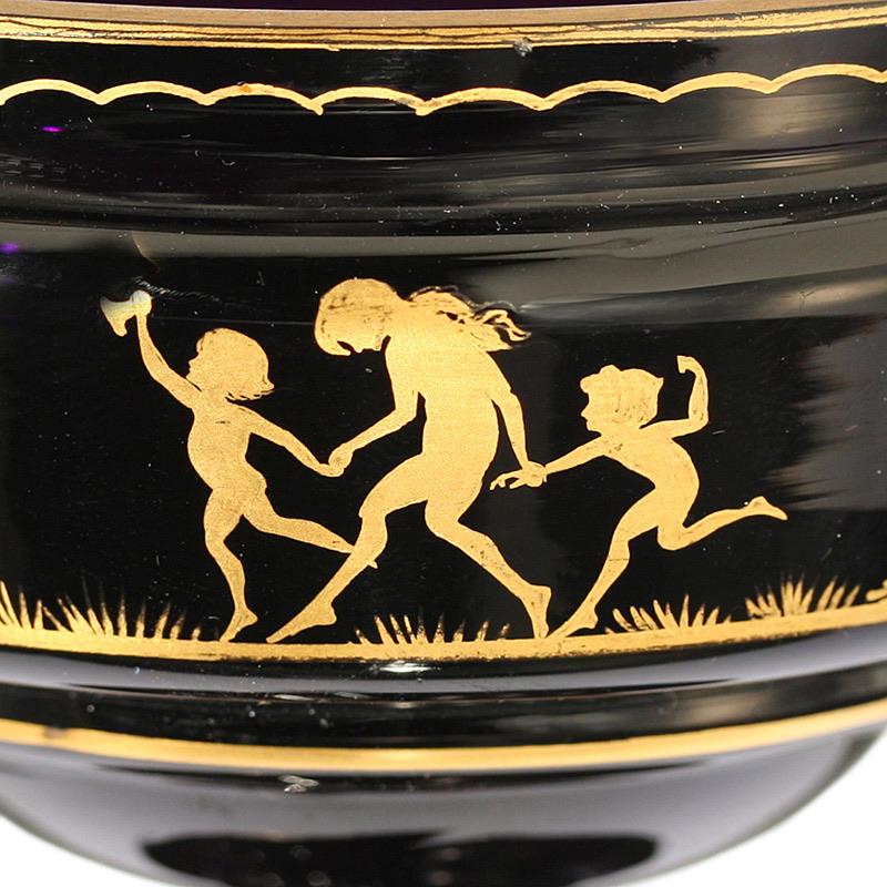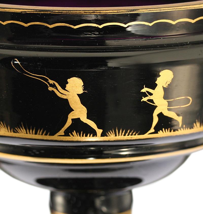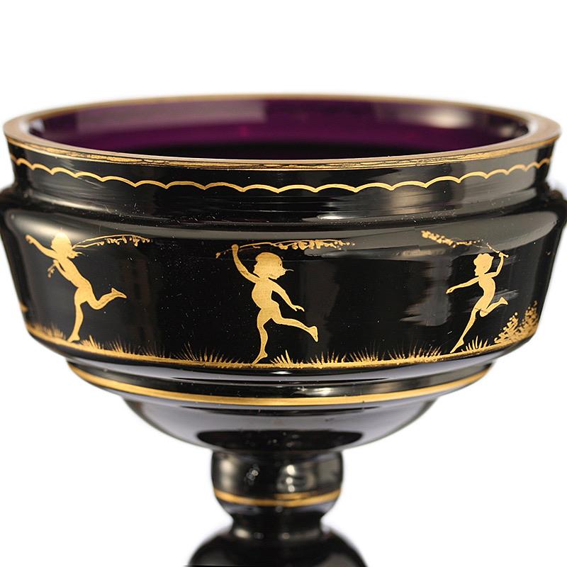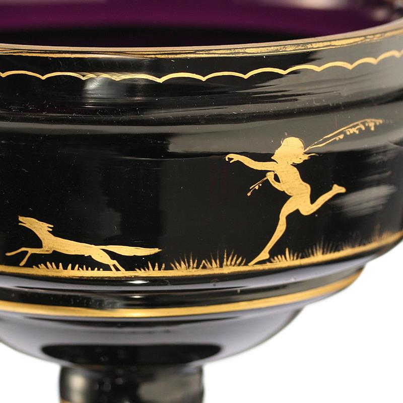 c.1910 Amethyst Glass Footed Bowl, Diefenbach Style Figural Decoration