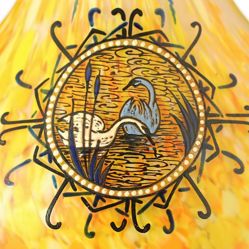 c.1910 Legras Printania Amboise enamelled tall glass vase, signed