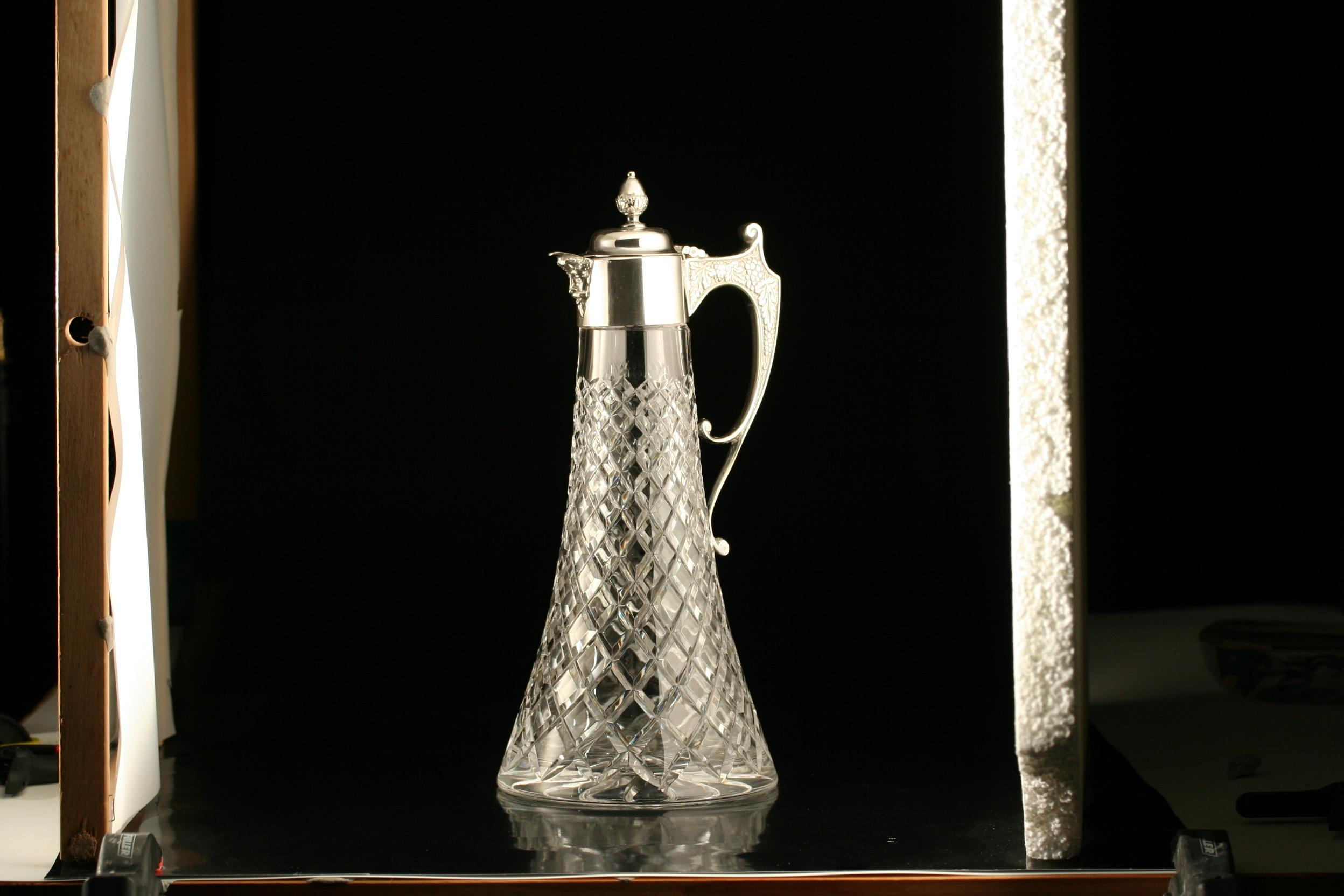 ENQUIRE ABOUT C.1920S CUT CRYSTAL WINE JUG W/ FACEMASK TOP
