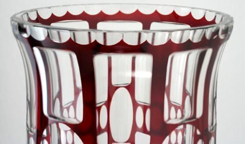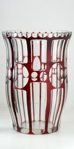 ENQUIRE ABOUT C.1920S JOHANN OERTEL DECO RUBY OVERLAY & OPTICAL CUT GLASS VASE