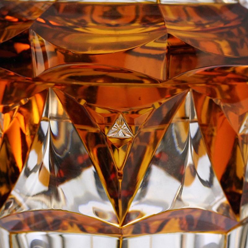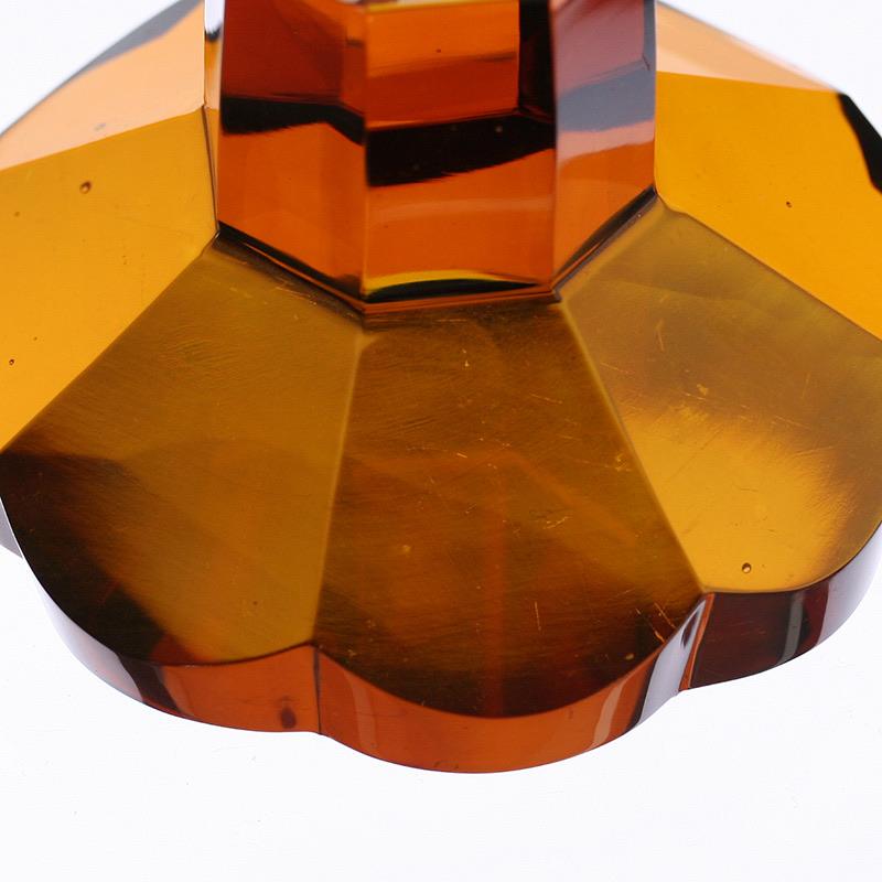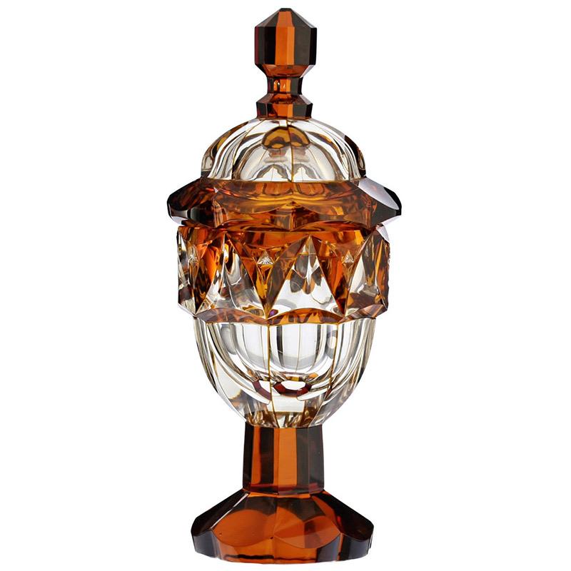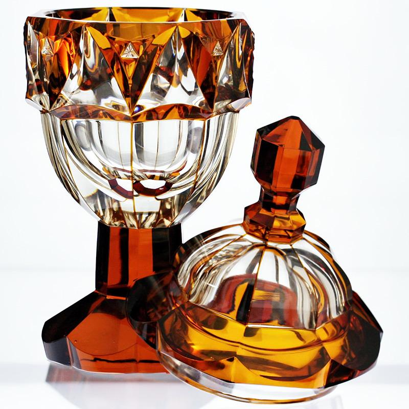 c.1930s Bohemian flashed amber facet cut glass goblet vase & cover