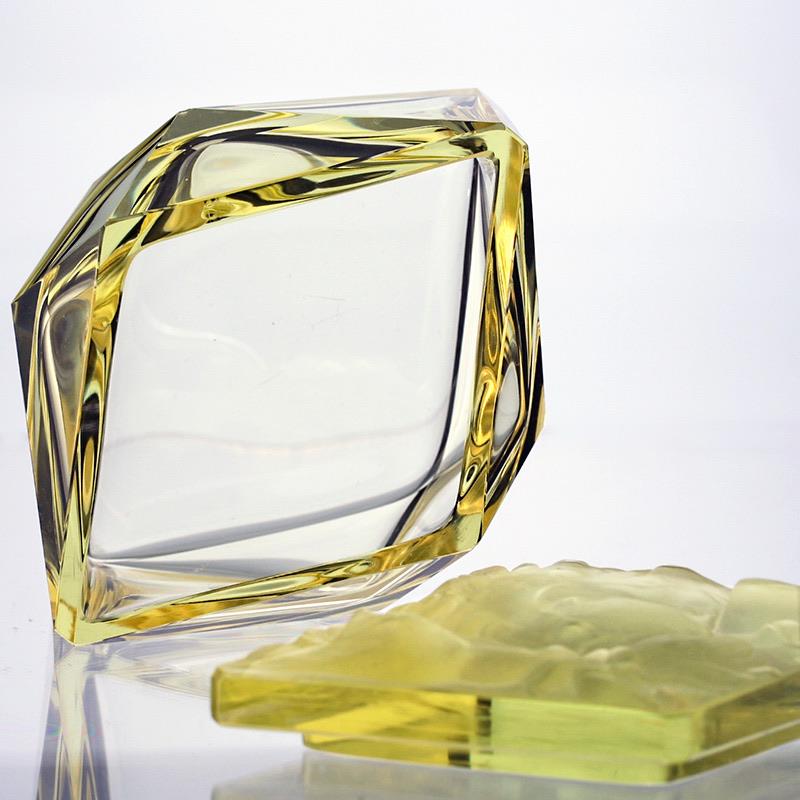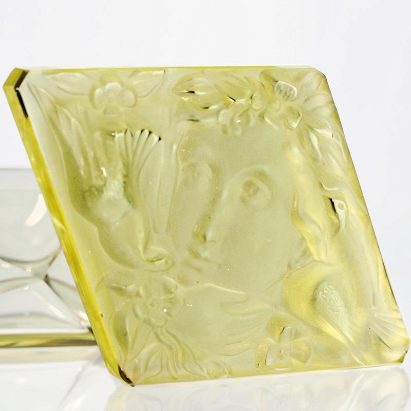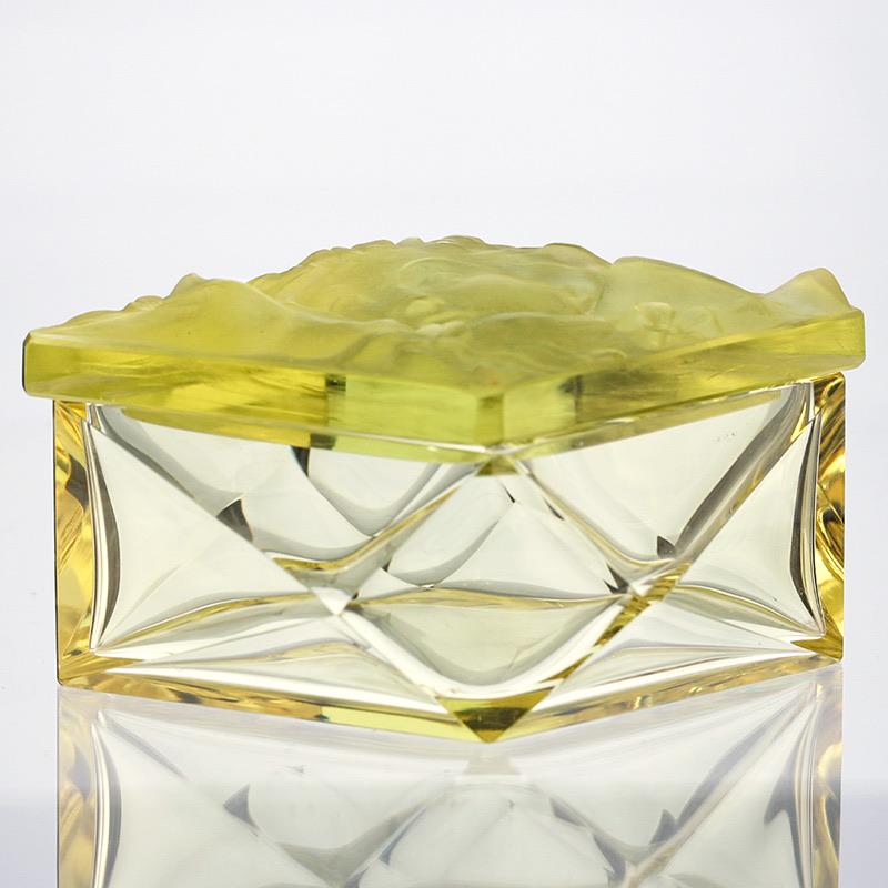 c.1930s citrine glass box & cover with high relief moulding, Rudolf Hlousek