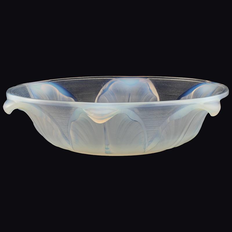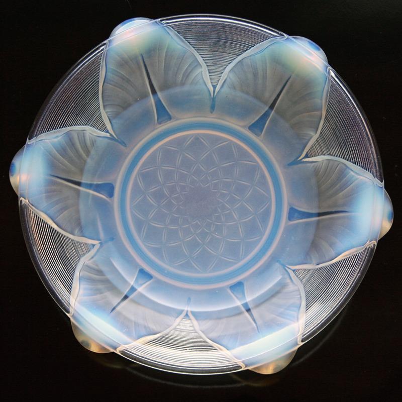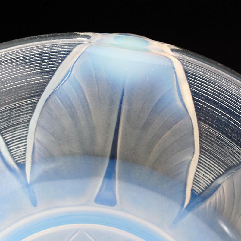 c.1930s Ezan France opalescent Deco glass lily pad bowl