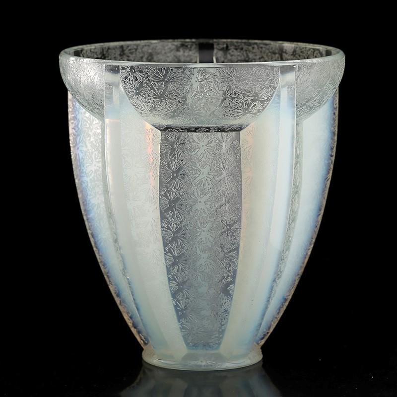 c.1930s French Art Deco heavy opalescent glass Corolle vase, André Hunebelle