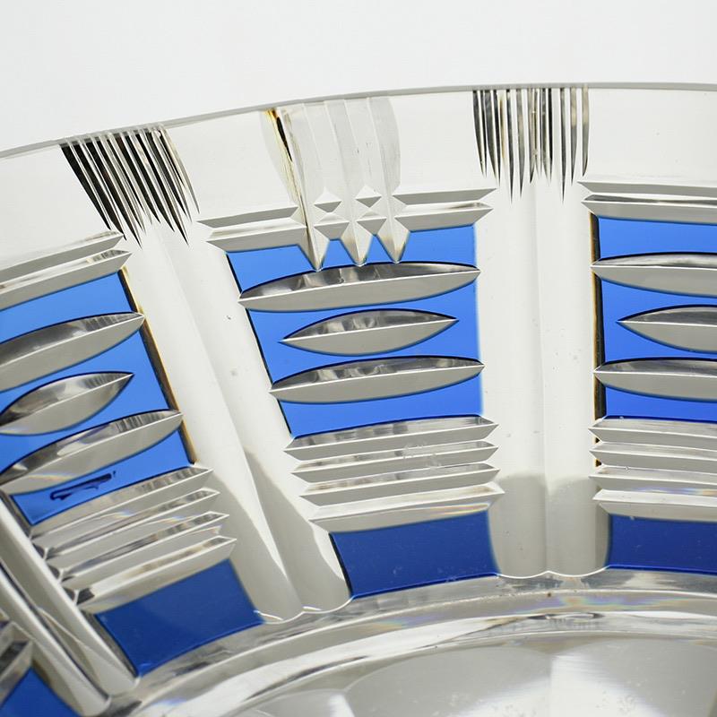 c.1960s large Val St. Lambert Syracuse blue overlay crystal bowl