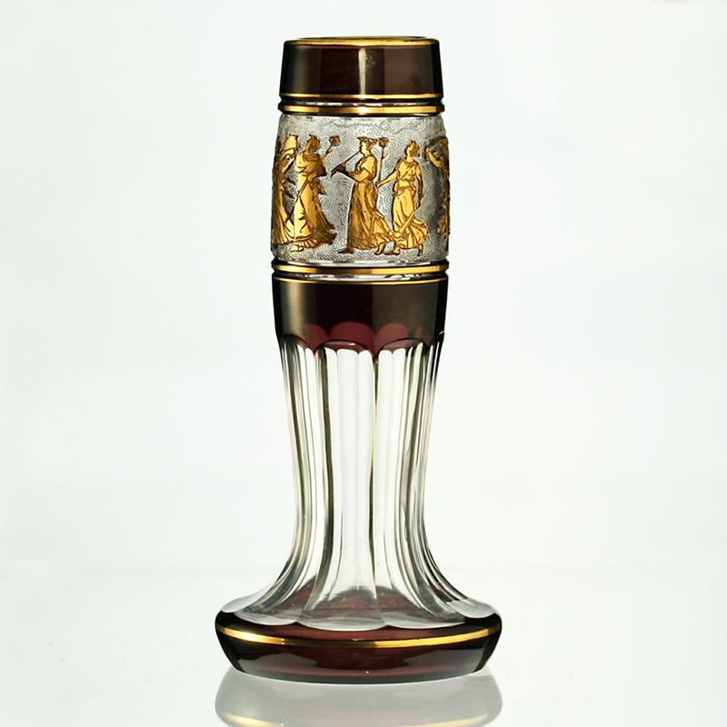 rare c.1930s Val St. Lambert Danse de Flore plum to clear crystal vase