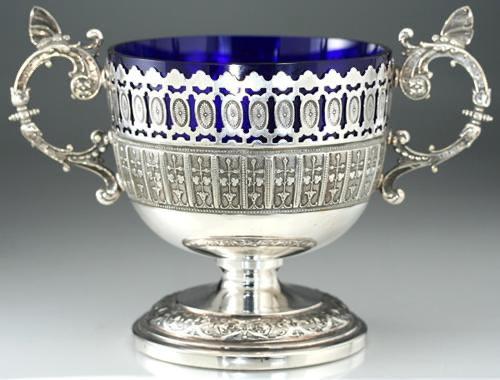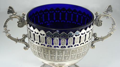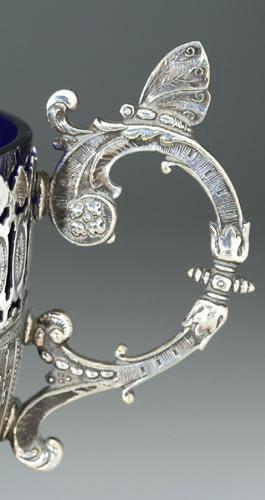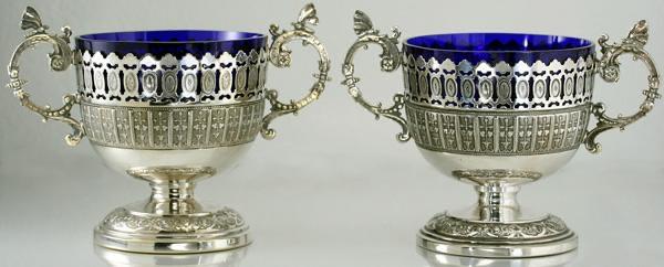 c.1906 PAIR OF WMF PLATED SUGAR BASKETS WITH BLUE LINERS