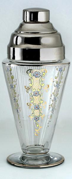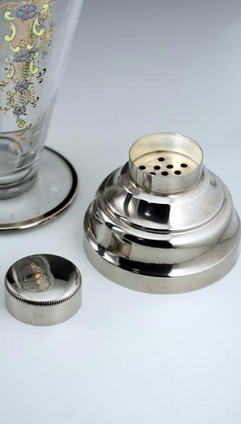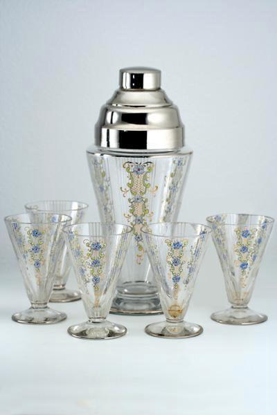 ENQUIRE ABOUT C.1930S DECO ENAMELLED COCKTAIL SHAKER & FIVE GLASSES SET