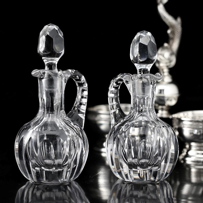 c.1950s Spanish cut crystal cruet set in silver dolphin holder