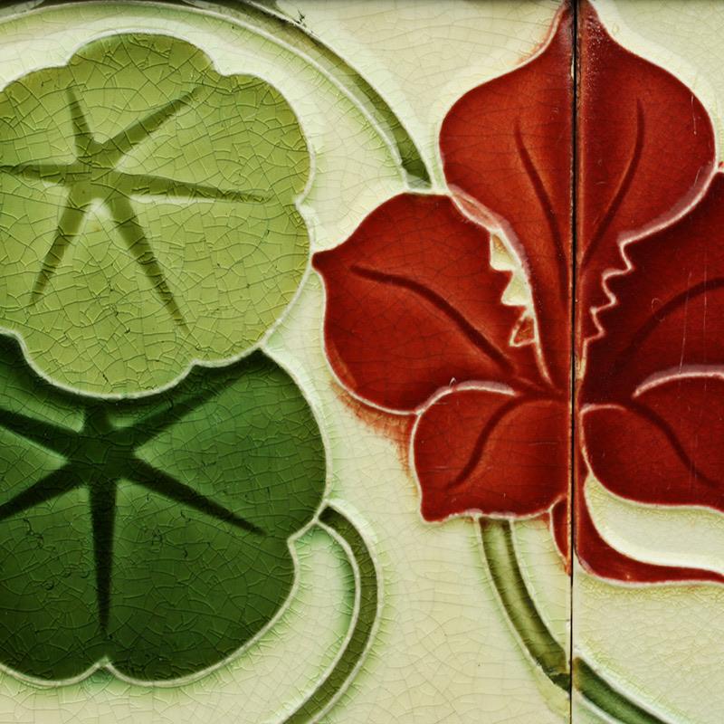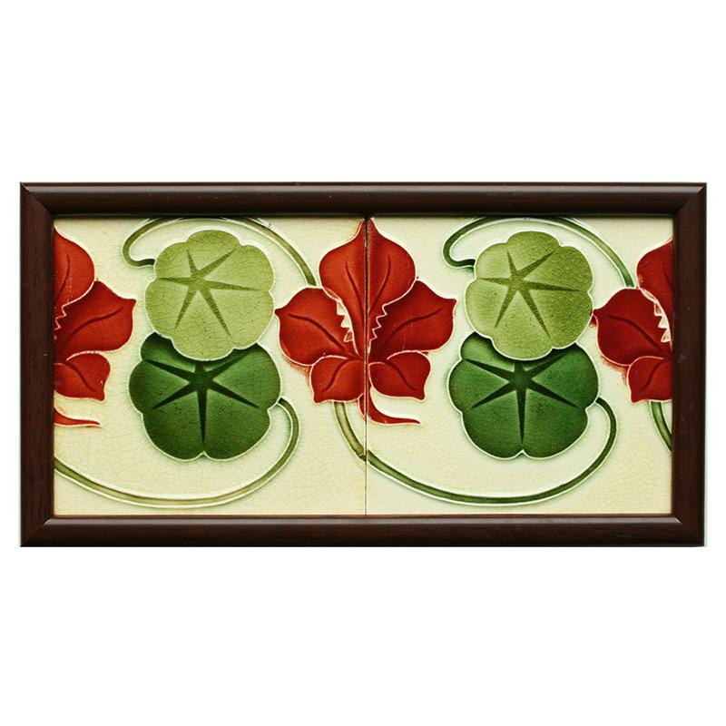ENQUIRE ABOUT C.1905 VILLEROY & BOCH TWO TILE NASTURTIUM PANEL, FRAMED