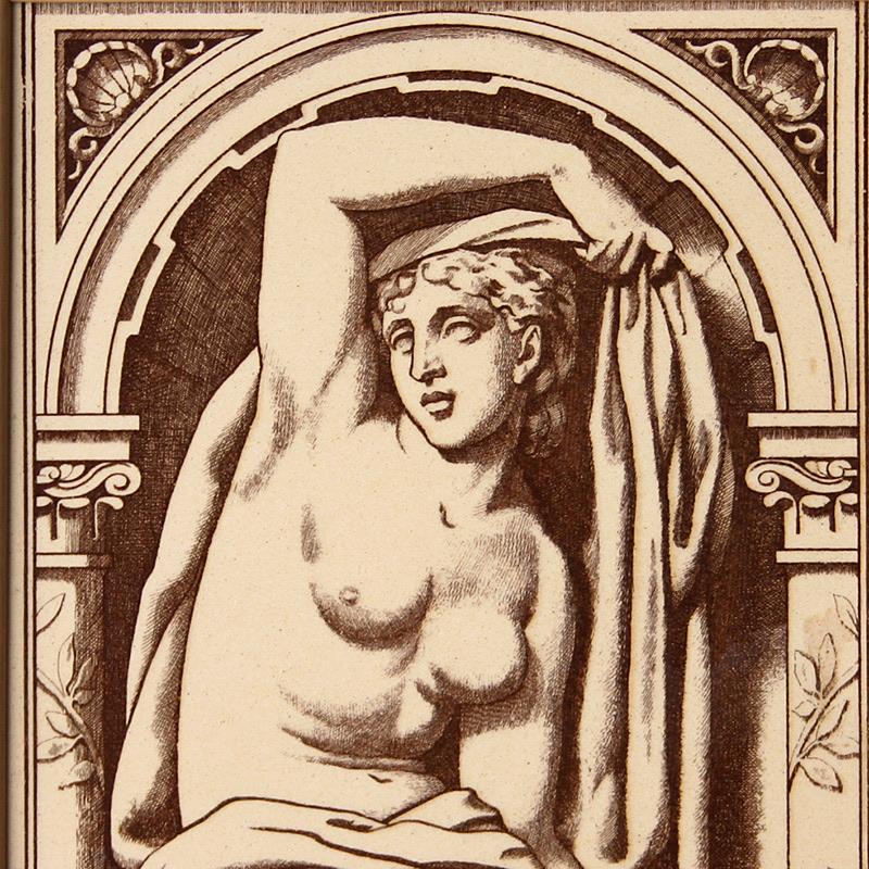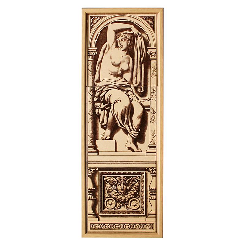 rare c.1885 Mintons three tile figure sculpture panel, framed