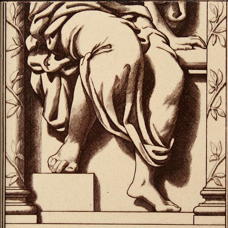 ENQUIRE ABOUT RARE C.1885 MINTONS THREE TILE FIGURE SCULPTURE PANEL, FRAMED