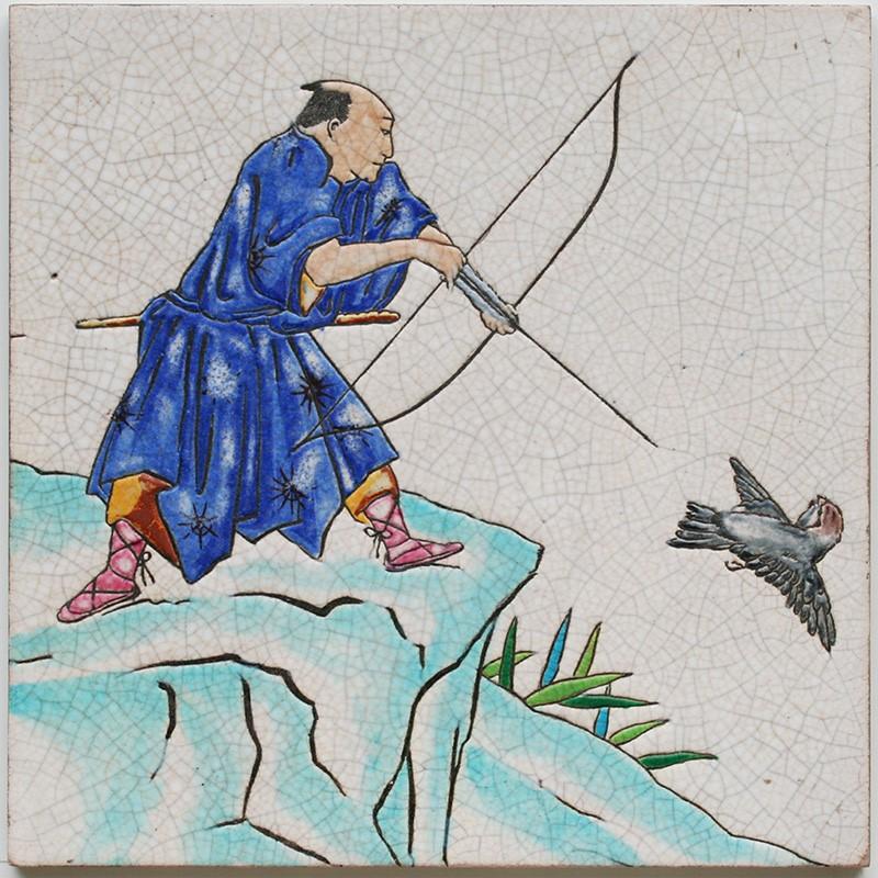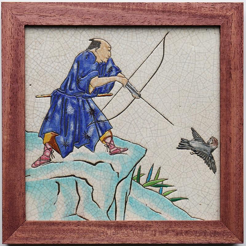 ENQUIRE ABOUT C.1900 GIEN FRANCE JAPANESE HUNTER 8 TILE, FRAMED