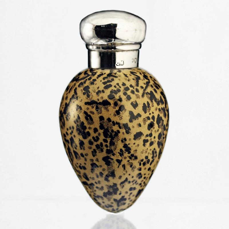 ENQUIRE ABOUT 1884 MACINTYRE PORCELAIN BIRDS EGG SCENT PERFUME BOTTLE, SILVER TOP