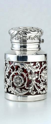 ENQUIRE ABOUT 1891 SAMPSON MORDAN SILVER CASED RUBY GLASS SCENT PERFUME BOTTLE