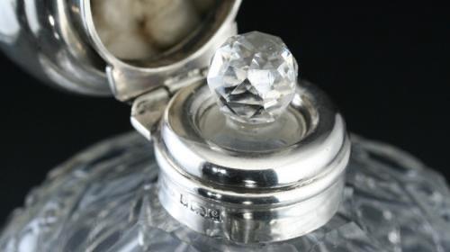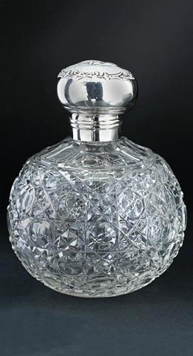 ENQUIRE ABOUT 1902 CUT CRYSTAL SPHERICAL DRESSING TABLE SCENT PERFUME BOTTLE, SILVER TOP