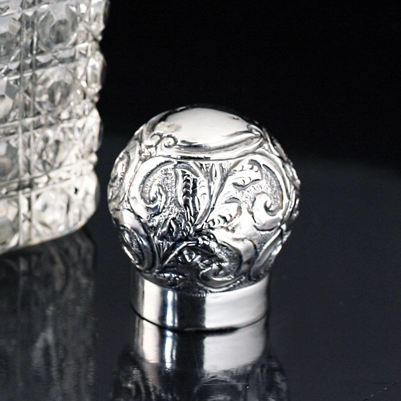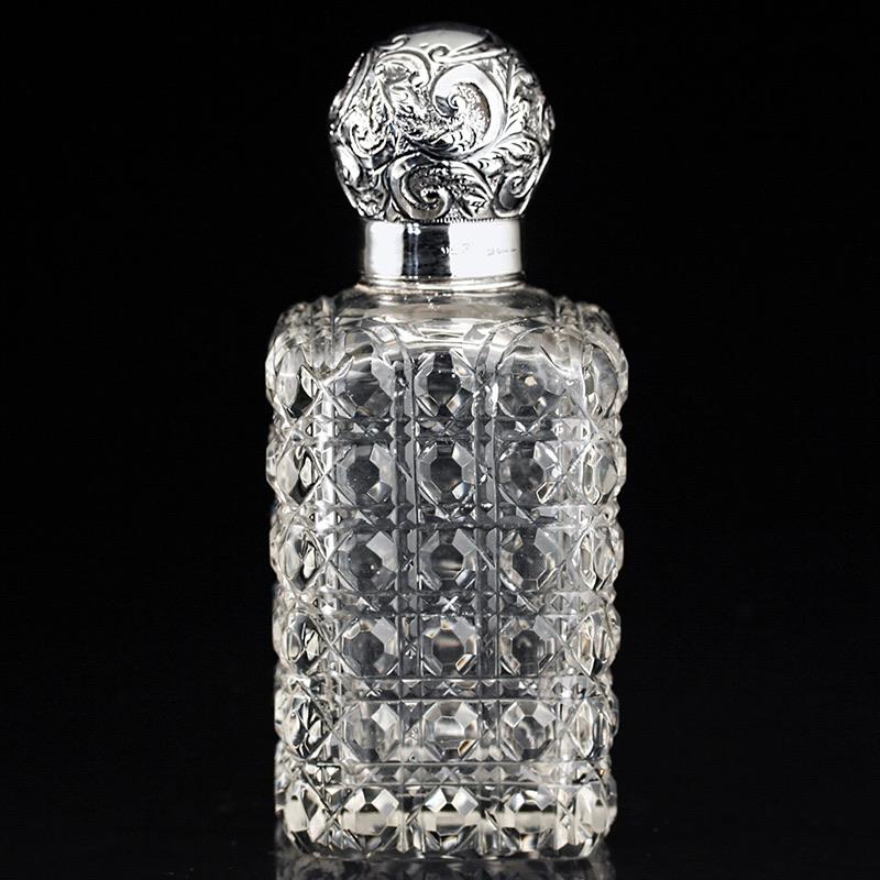 1905 cut crystal scent perfume bottle, silver top