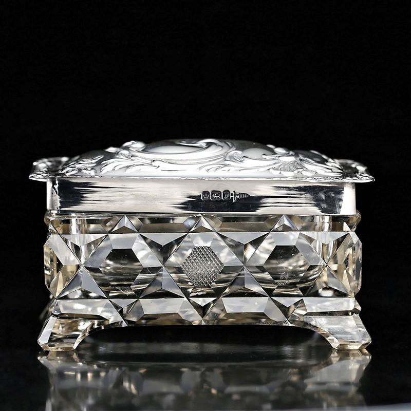 ENQUIRE ABOUT 1907 CUT CRYSTAL BOX CONTAINER WITH STERLING SILVER COVER