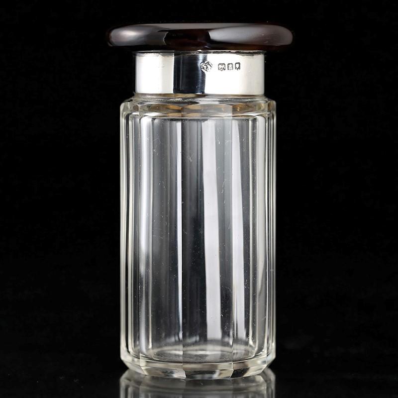 ENQUIRE ABOUT 1916 CUT CRYSTAL DRESSING TABLE PIN JAR WITH SILVER PIQUE TORTOISESHELL COVER
