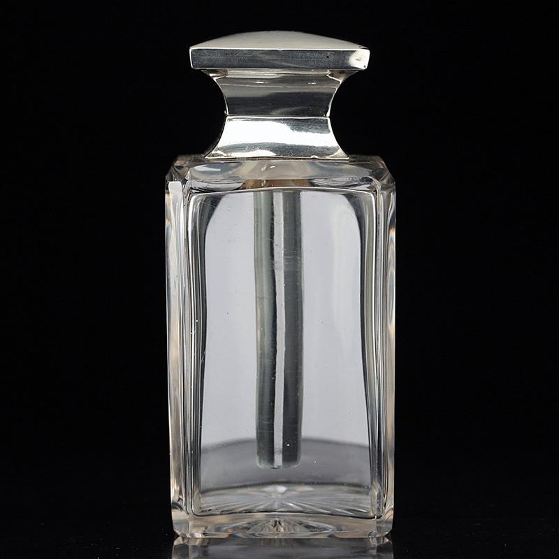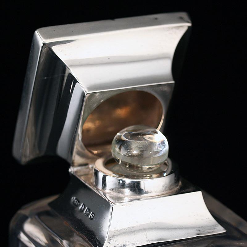 1938 cut crystal Deco dressing table bottle, sterling silver top