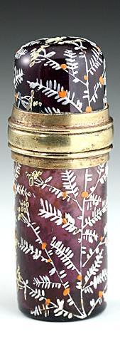 c.1870 ENAMELLED AMETHYST CYLINDER SCENT PERFUME BOTTLE